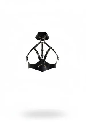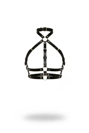 Büyük Beden Siyah Kadın Deri Sütyen Harness Takım Halkalı Detaylı Fantezi Aksesuar - APFT112