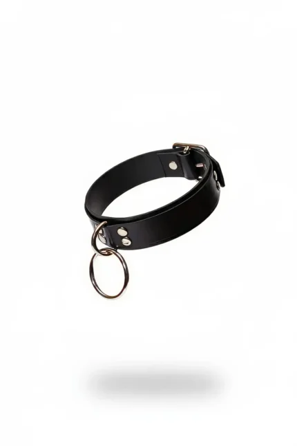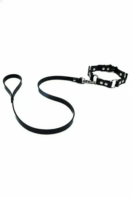 Siyah Deri Metal Halkalı Zımbalı Kayışlı Choker SH309