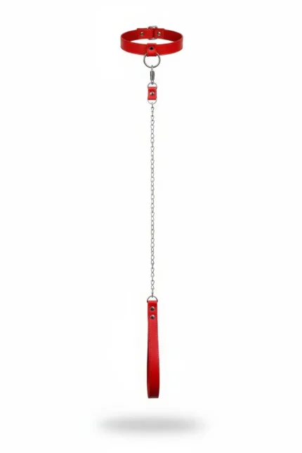 Kırmızı Deri Zincirli ve El Tutma Saplı Choker Tasma SH774