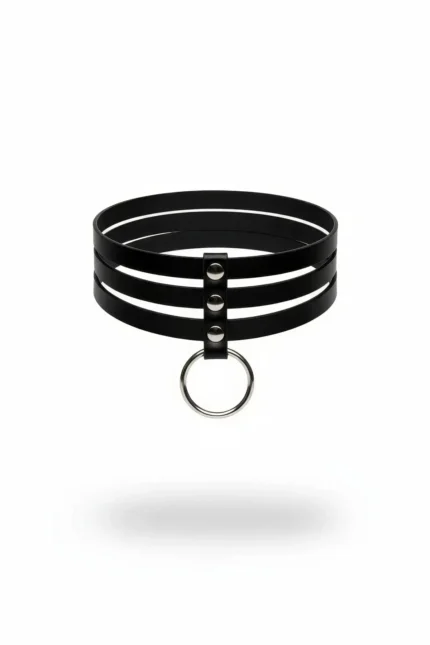 Siyah 3 Sıra Deri Halka Detaylı Choker Tasma SH777