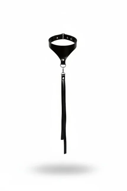 Siyah Deri V Kesim Halka ve Uzun Şerit Detaylı Choker Tasma Kolye SH421