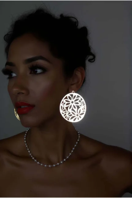 33,9 $Beyaz Reflektörlü Lazer Kesim Çiçek Motifli Küpe APBJ023