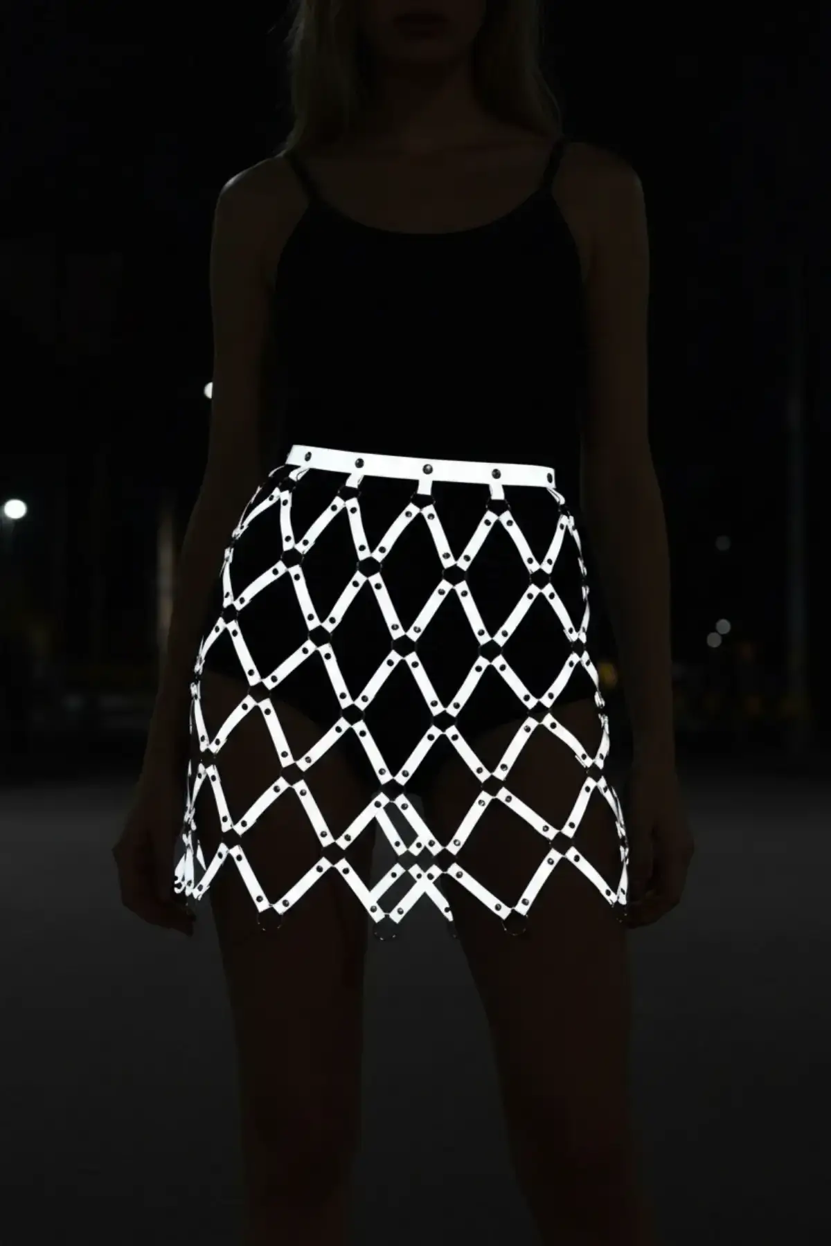 Engineered for confidence and a flawless fit, this party skirt offers both a striking aesthetic and superior quality. The high-waisted design cinches the figure while the micro mini length showcases your legs. Unlike standard apparel, the special fabric of this Reflective Skirt is built to last and maintain its unique light-responsive properties wear after wear. The fit is comfortable yet structured, blending the appeal of a Leather Skirt with the futuristic edge of holographic material. Pair this stand-out piece with a sleek top or layer it with a bold Body Harness for an instant, electrifying ensemble.