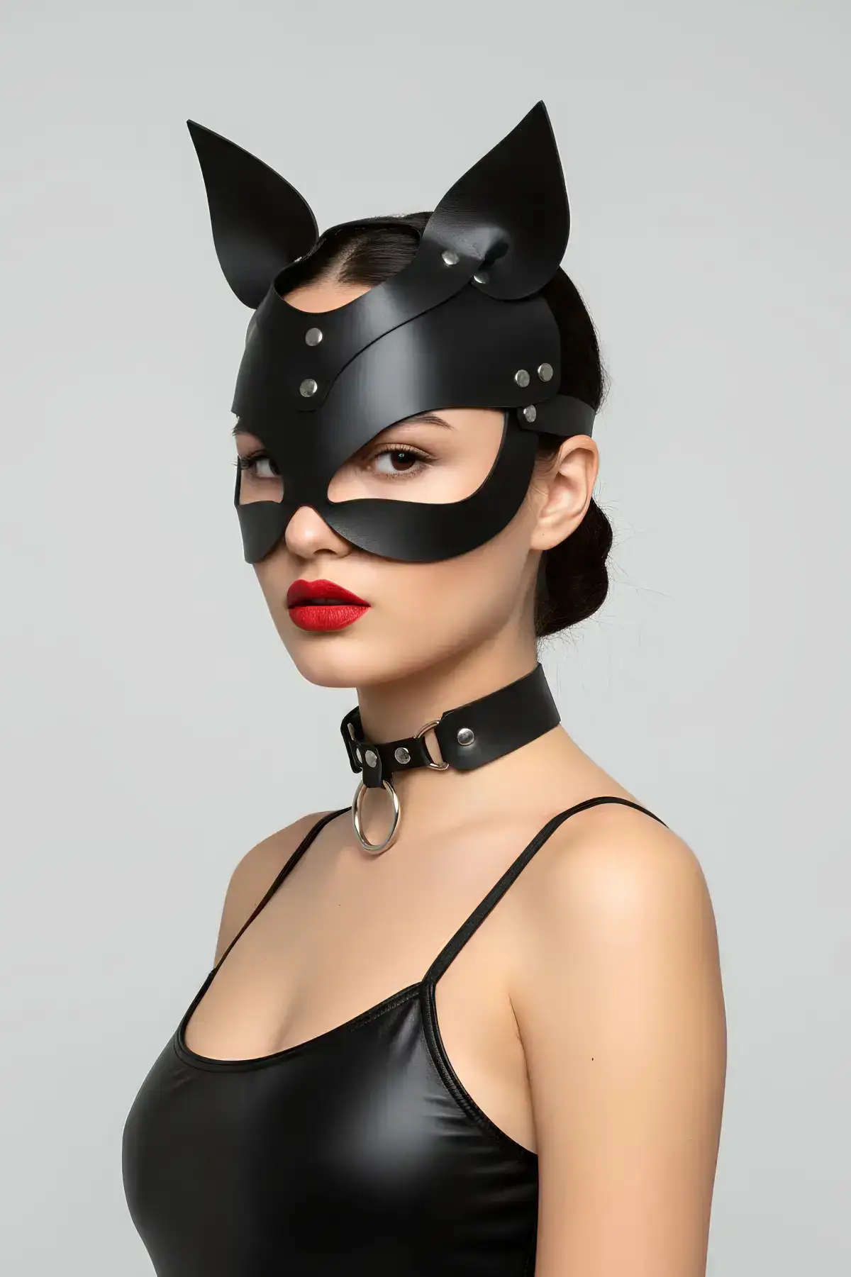 This highly-rated Black Mask Leather Cat Ear Costume demonstrates exceptional craftsmanship, focusing on comfort and secure fit. Unlike heavier rubber or plastic masks, the lightweight faux leather construction allows for extended wear during parties or cosplay events. The thin straps fasten discreetly at the back of the head, ensuring the mask stays perfectly in place without sacrificing style. Pair this captivating piece with a matching Women’s Harness or a delicate Choker to create a cohesive and alluring aesthetic.