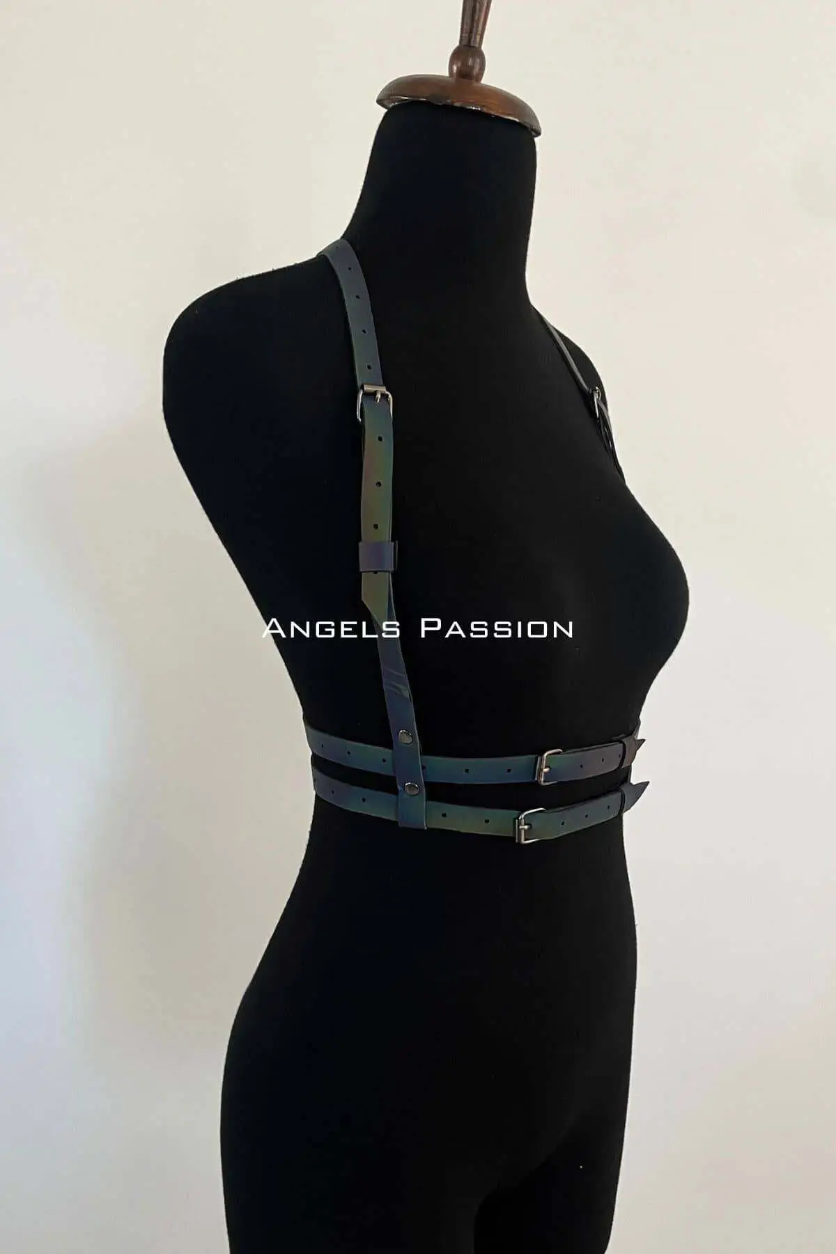 Crafted from durable, yet flexible **iridescent webbing**, this piece is built for movement and dance. The **Glow-in-the-Dark Chest Harness** description perfectly captures the dynamic, light-sensitive nature of the fabric. To ensure maximum wearability, the shoulder and torso straps are easily resized to suit all body types, solidifying its place as essential festival fashion. Whether you wear it as a bold accessory or as functional **rave gear**, its craftsmanship is evident. Complete your unique outfit by checking out our other specialized accessories like a **strong>Chest Harness or our broader range of **strong>Women’s Harness** styles.