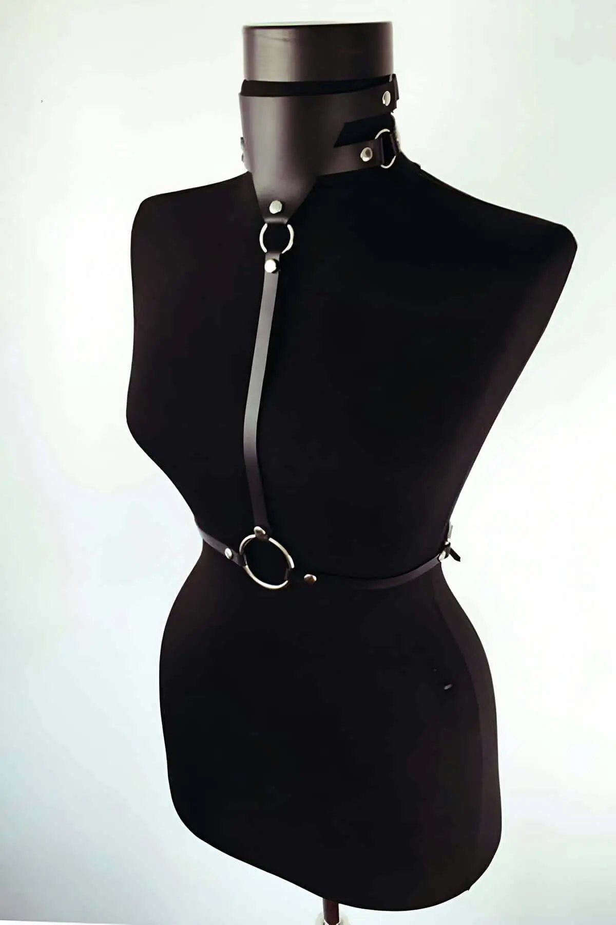 Black Chest Harness High Neck with O-Ring Detail – SH1044