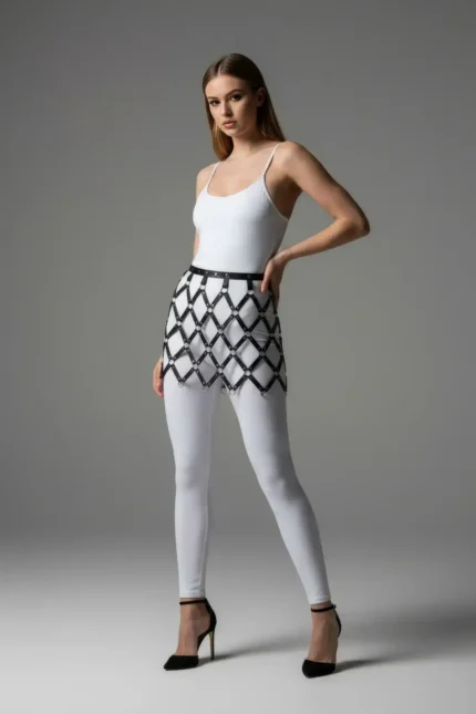Siyah Kafes Desenli Metal Detaylı Deri Etek SH981