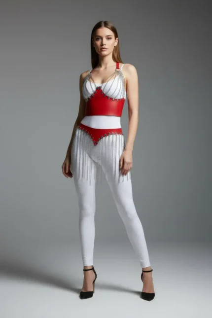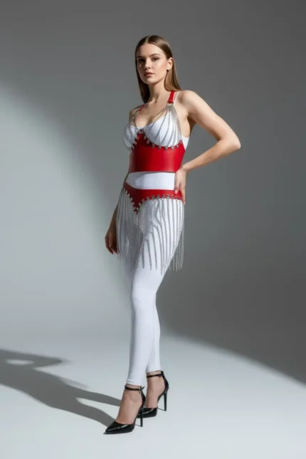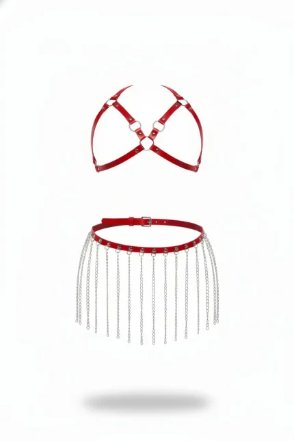 78,9 $Zincir Detaylı Kırmızı Suni Deri Etek Vücut Aksesuarı SH994