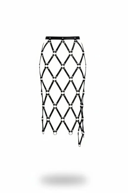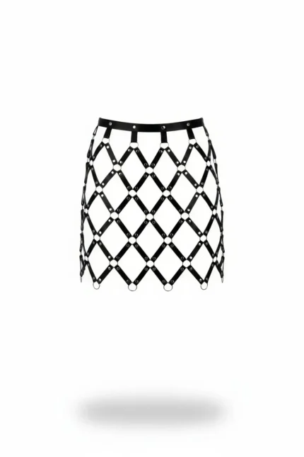 Siyah Halka Detaylı Kafes Tasarım Deri Mini Etek SH694