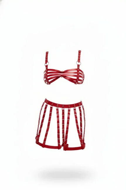 54,9 $Kırmızı Suni Deri Jartiyer Askılı Kemerli Volanlı Mini Etek SH998