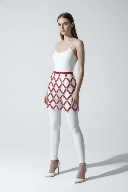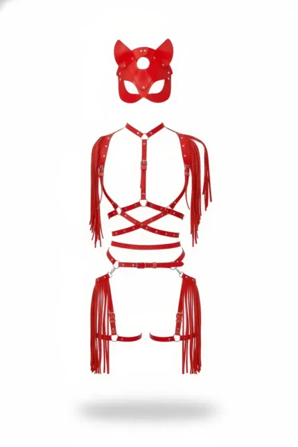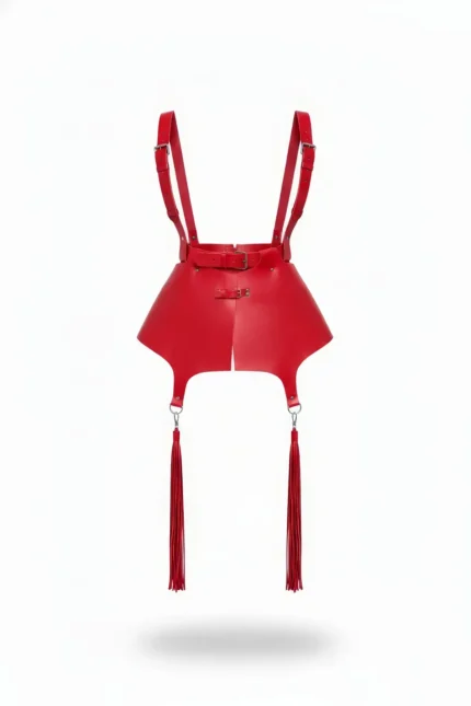Kırmızı Deri Püsküllü Etek ve Vücut Aksesuar Seti SH892
