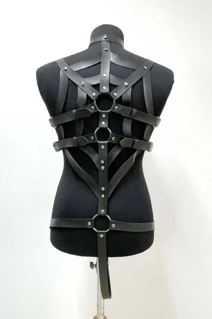 Siyah Deri Örümcek Ağı Detaylı Erkek Harness SHM233