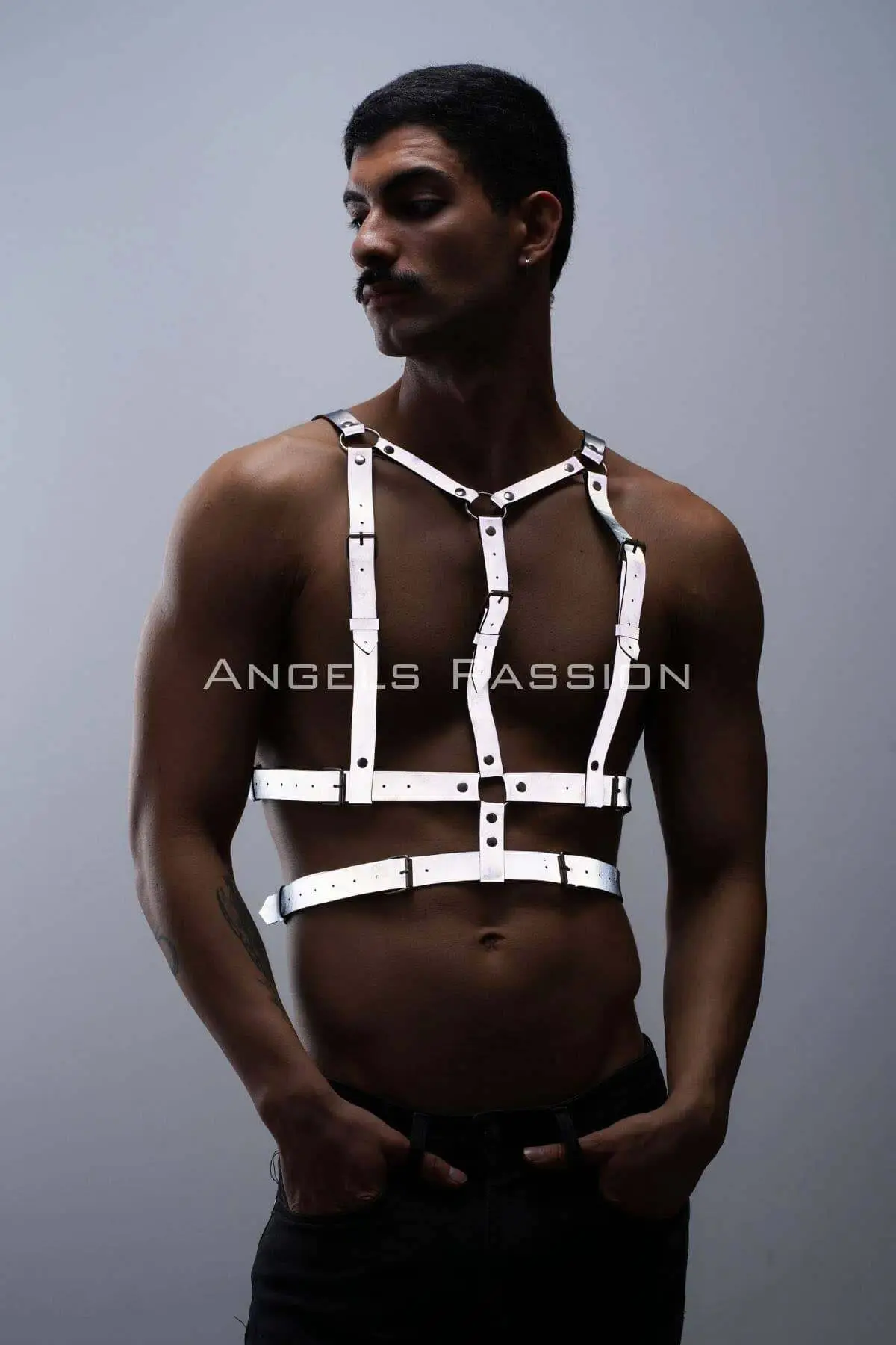 Step into the spotlight with the revolutionary Reflective Glow Harness, engineered for the man who doesn’t just attend the party—he is the event. This isn’t merely an accessory; it’s a confident declaration, seamlessly blending high-fashion appeal with primal allure in the dark. Embrace the seductive power of light and shadow, letting your presence dominate the scene.