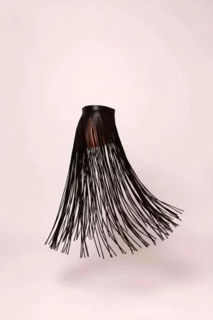 Siyah Uzun Püsküllü Yüksek Bel Suni Deri Etek SH1003