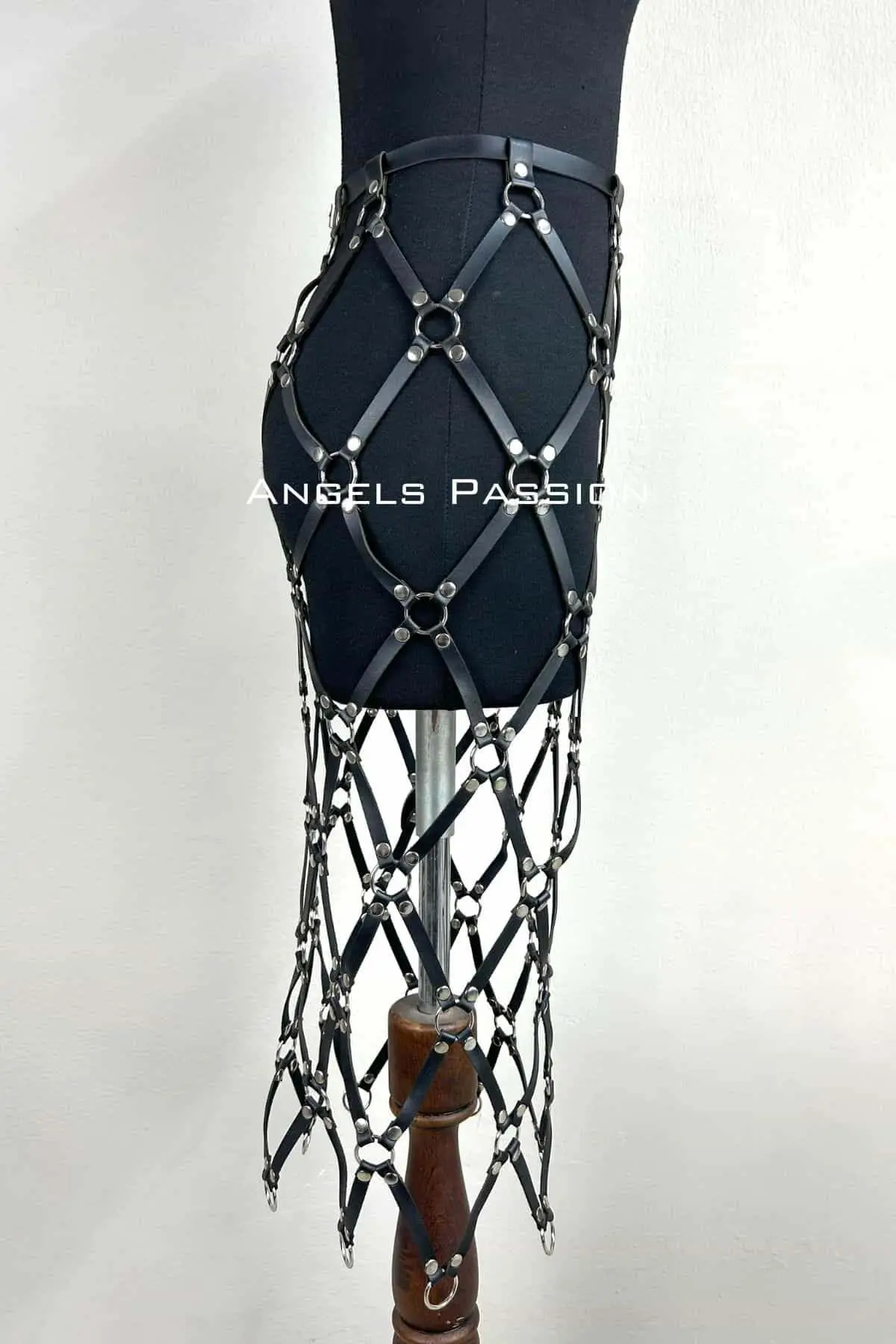 Crafted from a premium, flexible leather knit material for the main body and high-quality faux-leather strapping, the “SH410” offers both durability and comfort. The structural integrity holds its bold shape, while the adjustable elements ensure it adapts to your body, functioning like a powerful Women’s Harness. This design is built for movement and can be styled over jeans, trousers, or even another skirt for a truly unique and personalized look. Invest in this piece for its exceptional craftsmanship and versatility, making it a staple in your edgy wardrobe.