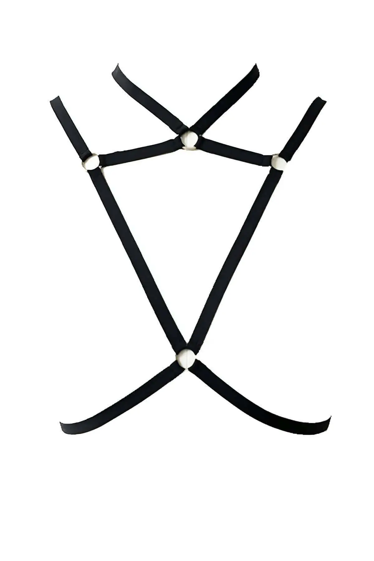 Elevate your wardrobe effortlessly with this essential Harness suitable for daily use. This piece features a striking yet subtle minimalist design, crafted from narrow black elastic bands that lie flat and comfortably against the body. The simple chest piece construction, visible in the flat-lay image, consists of classic shoulder straps and a single horizontal band, making it the ideal *versatile accessory* for layering. Forget bulky hardware; this piece focuses on comfortable wear and a streamlined silhouette, instantly adding an edge to any outfit without overwhelming your style.