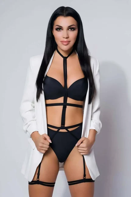 37,9 $Zincir Detaylı Siyah Elastik Body Harness ve Jartiyer SH1078
