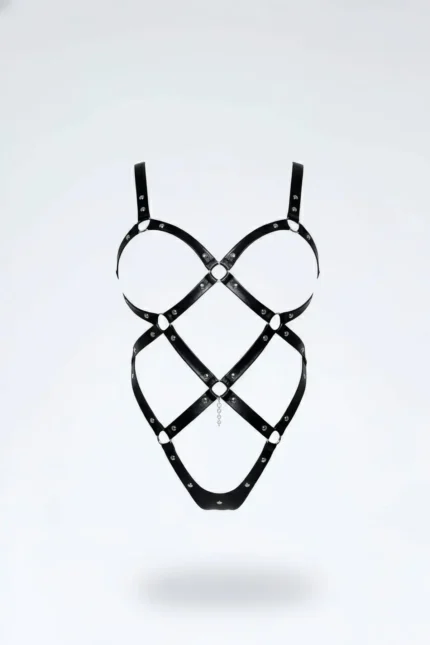 Siyah Deri Halka ve Zımba Detaylı Çapraz Bantlı Body Harness SH542