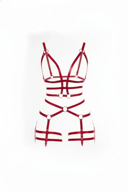 Kırmızı Suni Deri Halka Detaylı Jartiyerli Body Harness SH820