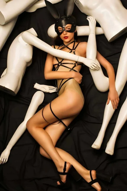 37,9 $Siyah Zincir Detaylı Lastikli Vücut ve Bacak Aksesuarı Body Harness SH587