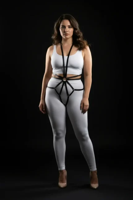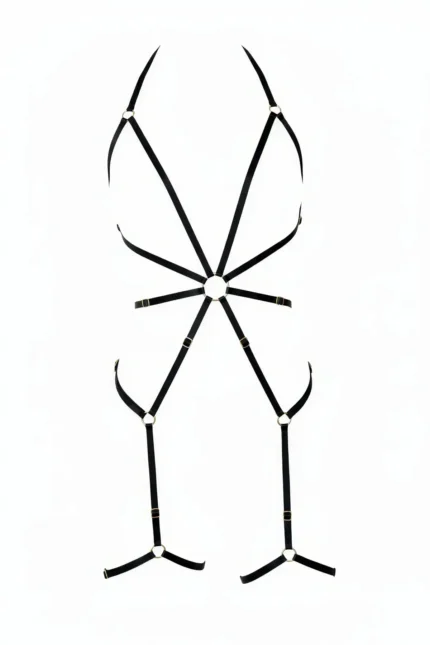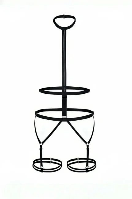 Siyah Boyun Detaylı Jartiyerli Bacak Bantlı Vücut Harness SH39