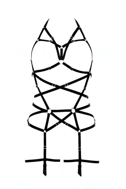 33,9 $Siyah Halka Detaylı Şeritli Jartiyerli Body Harness SH348