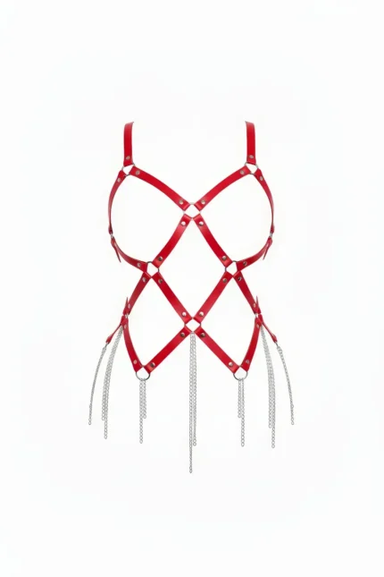 Kırmızı Suni Deri Zincir Detaylı Body Harness SH950