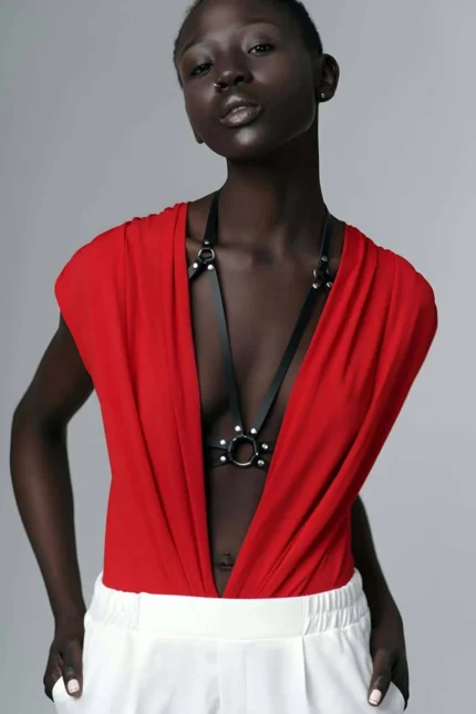 Red Chest Harness Leather Cross Strap Body Accessory – SH867