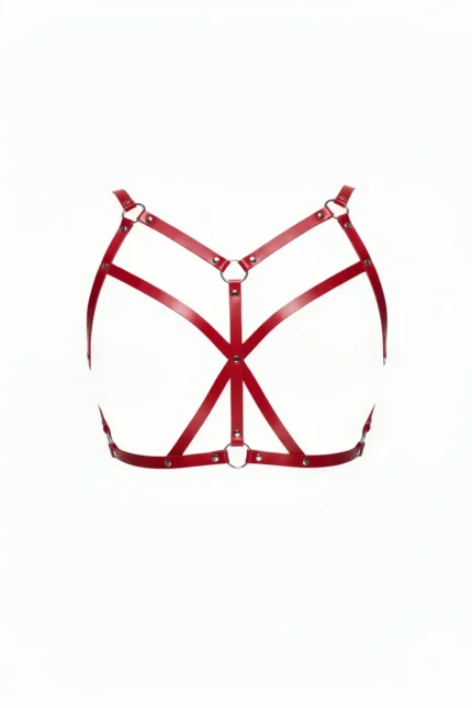 Red Leather Chest Harness with Cross Straps and O-Ring Detail – SH247