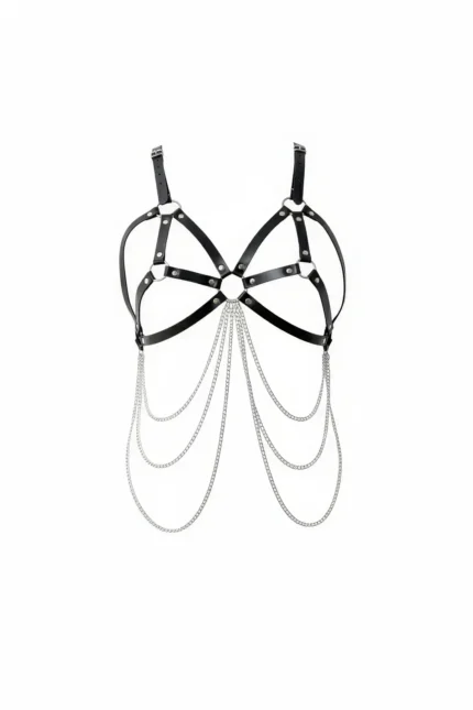 Black Chest Harness Leather Body Accessory with Chain Detail – SH1175