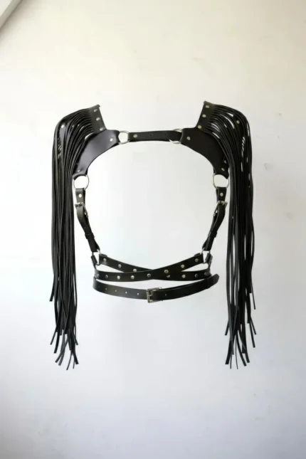 Stylish Leather Harness with Chain Detail – SH824