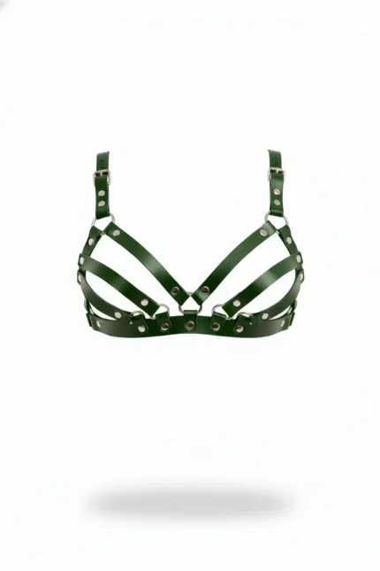 Dark Green Chest Harness with Leather Stud Detail and Adjustable – SH733