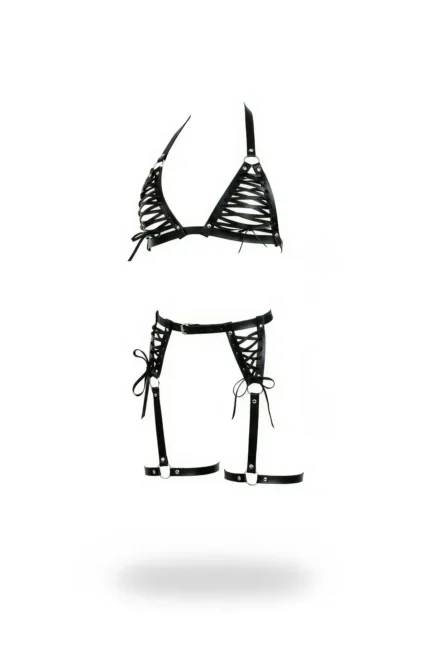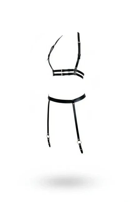 Black Harness Set Faux Leather with Adjustable Garters – SH232