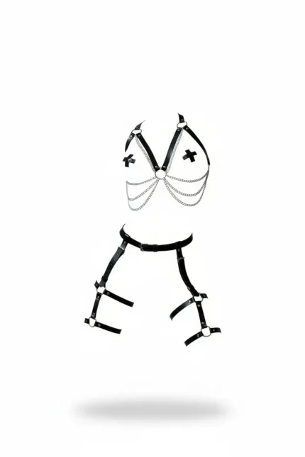 Black Harness Set with Chain Detail, Leather Body Accessory – SH497