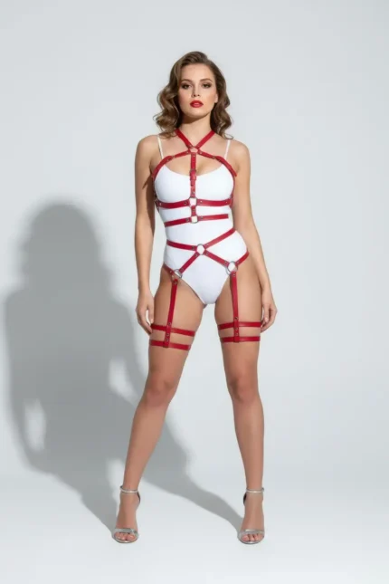 33,9 $Red Harness Set with Body Bandage and Metal Ring Detail – SH598