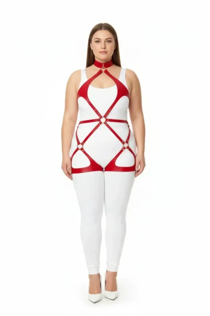 41,9 $Plus Size Red Women’s Leather Harness Set with Ring Detail Fantasy Body Accessory – SH1331