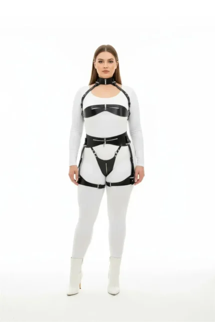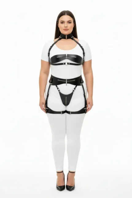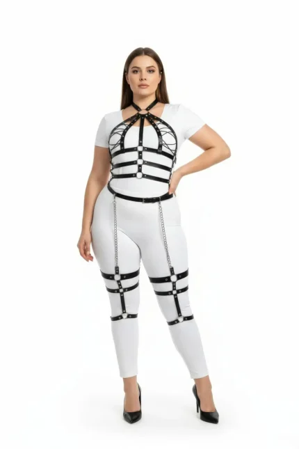 54,9 $Plus Size Black Women’s Harness Set with Chain Detail, Full Body Leather Accessory – SH698