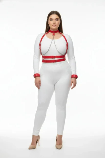 37,9 $Plus Size Red Women’s Leather Harness Set with Chain Detail Fantasy Accessory – SH720