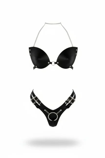 Black Harness Set Faux Leather Bralette with Chain Detail – SH1223