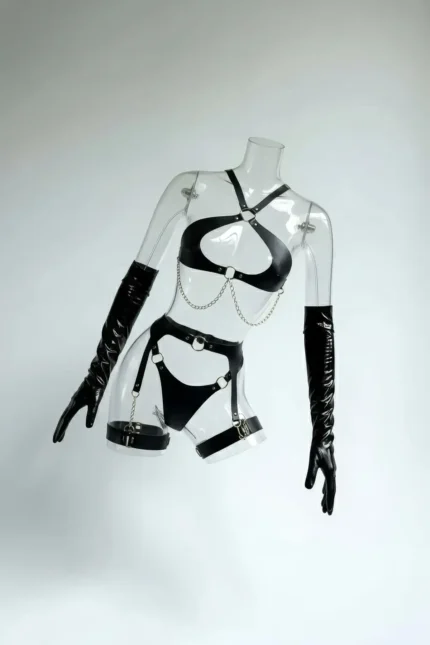 Black Harness Set Leather Body Garter with Chain Detail – SH702