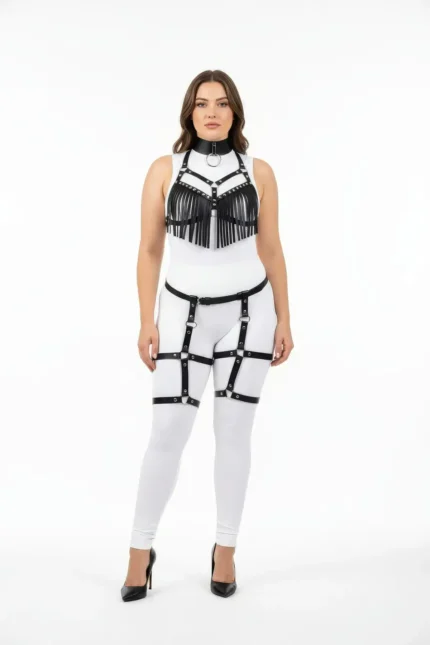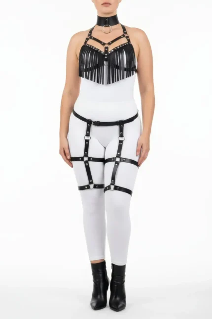 39,9 $Plus Size Black Women’s Harness Set with Tassels, Leather-Look Garter, Fantasy Accessory – SH715