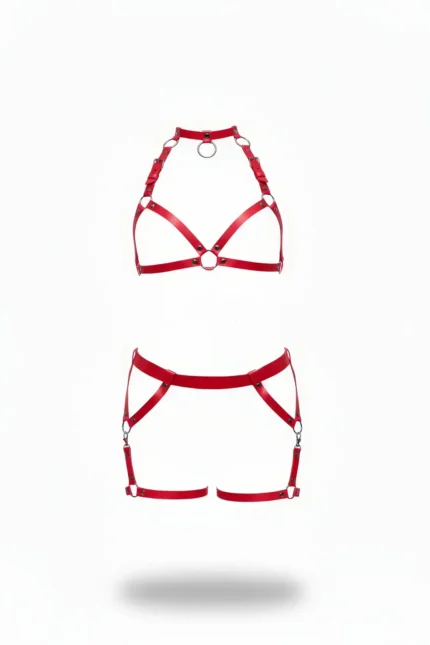Red Harness Set Leather Body Belt with Ring Detail – SH478