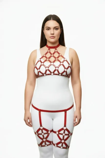 Red Harness Set with Staple Detail Mesh Body Accessory – SH460