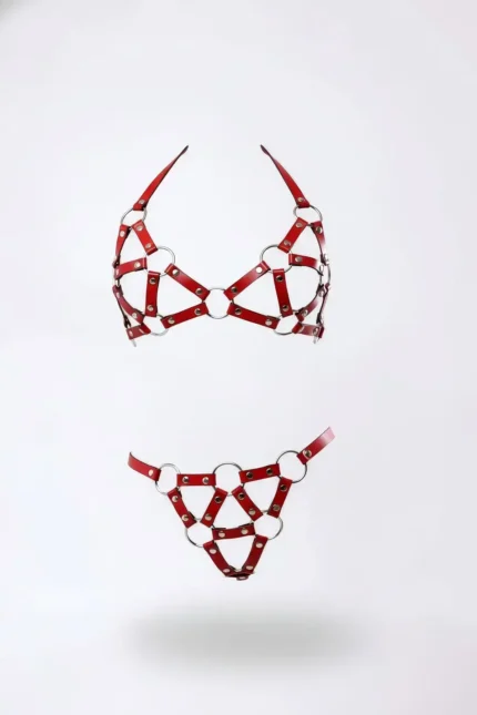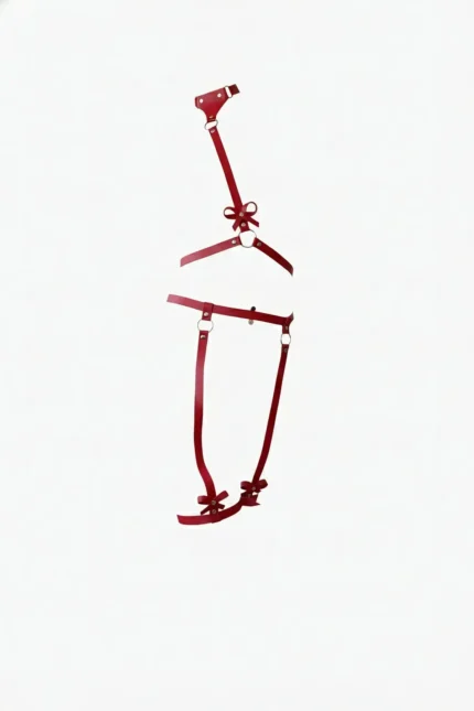 Red Women’s Harness Set with Bow Detail and Garter Belt – SH276