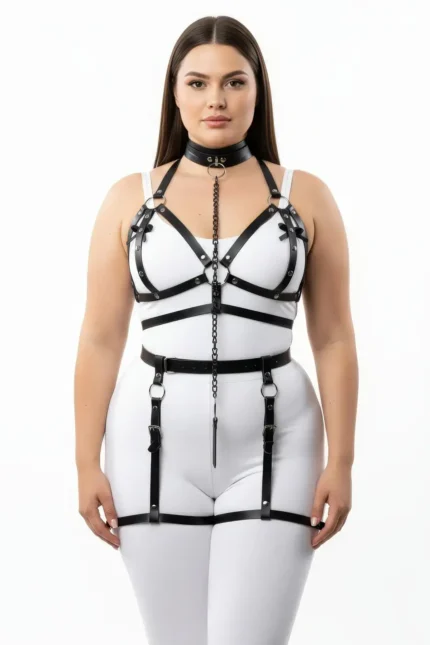 41,9 $Plus Size Black Women’s Harness Set with Chain Detail Leather Garter Accessory – SH457