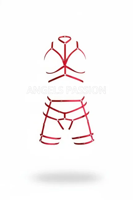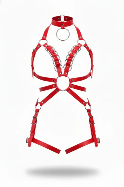 Red Harness Set with High Neck and Metal Ring Detail – SH142