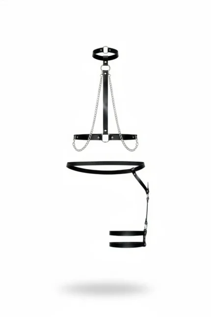 Black Harness Set with Chain Detail, Leather High Neck Garter Set – SH486