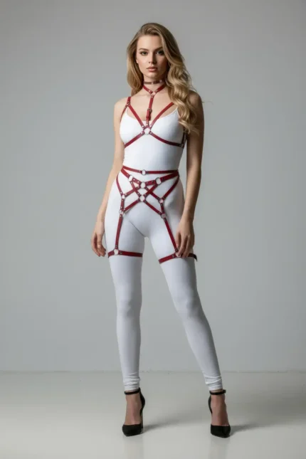 25,9 $Red Garter Harness Full Body Leather Accessory with Neck Support – SH310