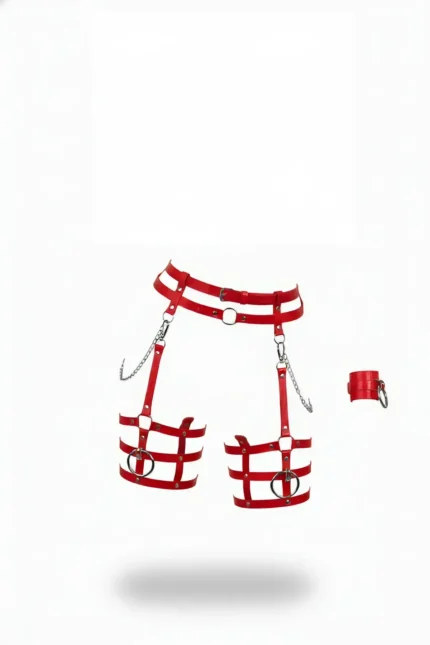 Red Garter Harness, Leather Material, Chain Detail – SH940