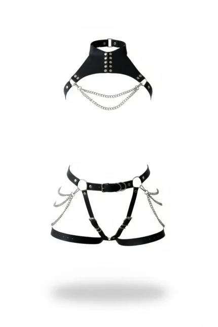 Black Leather Garter Harness with Metal Ring Detail – SH962